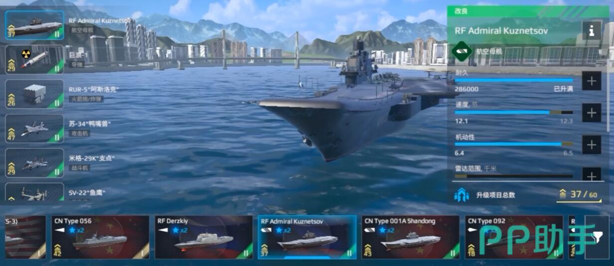库兹涅佐夫号是目前俄系航母里唯一能用的船,属于重型航母和巡洋舰的混合类型,主要玩法是在中距离用导弹和飞机压制敌人,同时给队友提供支援。为了帮助大家快速上手这个航母,小编带来一期现代战舰库兹涅佐夫号的入门攻略介绍,其实它的优点是导弹种类多、防空火力猛,但缺点也很明显——跑得慢、转向笨,得靠卡地形和走位来弥补机动性不足。