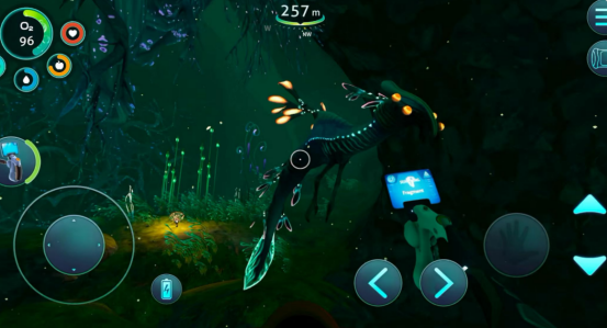 美术层面,《深海迷航:冰点之下》采用写实与幻想交融的视觉风格,呈现包括永冻冰川、巨型晶簇洞穴、地下热泉裂谷在内的多样化地貌。场景切换流畅,细节密度极高,光影与材质表现强化了严寒环境的真实压迫感。然而美景之下暗藏杀机:本土变异生物具备主动攻击性,低温会持续侵蚀生命值,暴风雪将随机中断探索节奏。玩家需熟练操作雪地摩托、钻探平台及气压潜水器等定制载具,并通过合成系统打造抗寒服、氧气再生装置与防御工事,以支撑长期野外作业。
