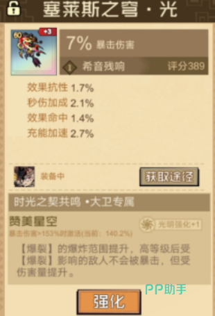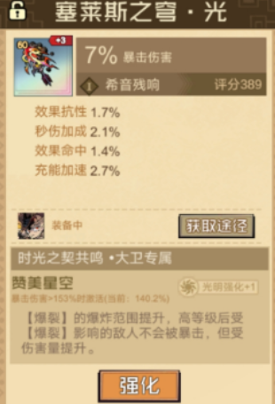 大卫同属高适配火队的主力角色,其专属残响亦为「希音」,但需通过「塞莱斯之穹光」触发,效果与沙拉曼存在本质差异:提供约7%暴击率加成,并增强自身元素抗性。在触发「赞美星空」共鸣后,其爆炸类技能作用范围扩大;且处于“爆裂状态”的敌人将不再享受暴击免疫,转而承受额外伤害增幅,从而实现精准秒杀与AOE压制的双重目标。