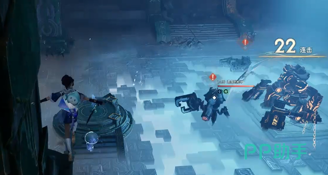 整个探秘流程始于主线任务“鲲游-云落远山”。完成该任务后,系统自动传送至【藏兵城渡石】场景,正式开启后续挑战序列。首阶段需清理广场区域的常规敌对单位;随后沿阶梯向上抵达断崖位置,启用牵引技能将指定目标移至左前方坐标点。穿过墙体缺口后,与NPC“神工役”交互并接受测试指令,击败守关敌人后获取关键道具——“第一把测试机关钥”。此时两柄长枪同步解锁,成为后续机关操作与区域通行的必要载具。