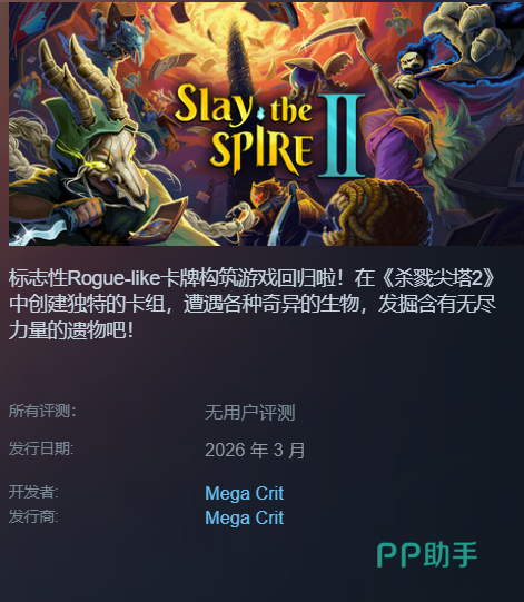 熟悉独立策略卡牌游戏的玩家,对《杀戮尖塔》(Slay the Spire)一定不陌生。这款以深度构筑、高自由度爬塔体验著称的作品,如今正式官宣续作——《杀戮尖塔2》。新作并非简单复刻,而是在核心玩法基础上进行系统性进化,带来更丰富的角色设定、更立体的卡组构建逻辑与更具张力的随机事件链。关于玩家最关心的问题:《杀戮尖塔2》上线时间是哪天?答案已明确公布——将于今年3月在Steam平台正式发售。