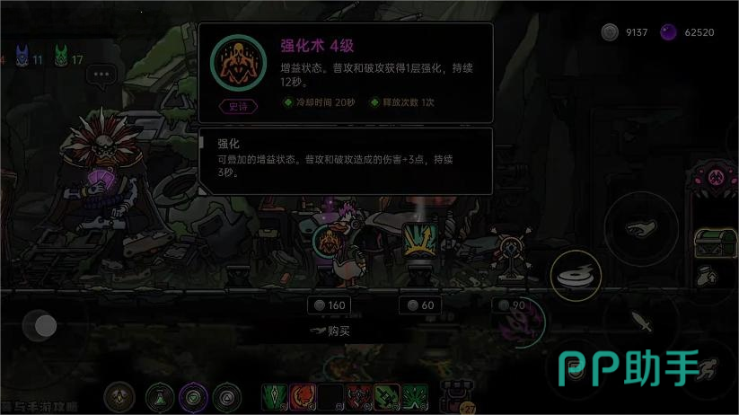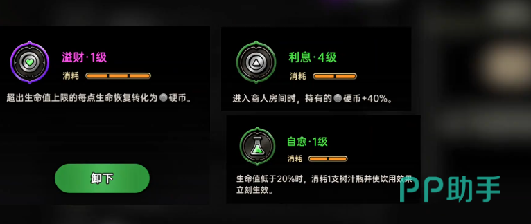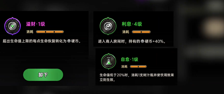 首先需要将所有预言类技能全部升至满级,这是整个刷币体系的前提条件。核心在于激活“溢财”效果——当角色的生命值恢复量超过其最大生命上限时,超出部分会按比例转化为硬币,这是实现高效率产出的关键机制。在此基础上,进一步选择“利息”词条,该效果可根据当前持有的硬币总数提升每次掉落收益。最后搭配“自愈”技能,在生命值低于20%时消耗一瓶树汁即可触发双倍回血效果,极大增强续航能力。