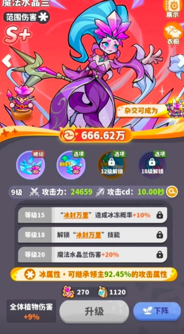 在《植物萌斗》这款策略塔防游戏中,玩家需面对持续涌来的僵尸军团,合理部署植物阵容是生存的关键。作为全游戏稀有度最高的S+级植物之一,魔法水晶兰凭借强大的群体控制与范围伤害能力,成为中后期战局扭转的核心角色。本文将系统解析该植物的实战机制、技能成长路径及团队协同策略,帮助玩家最大化其战术价值。