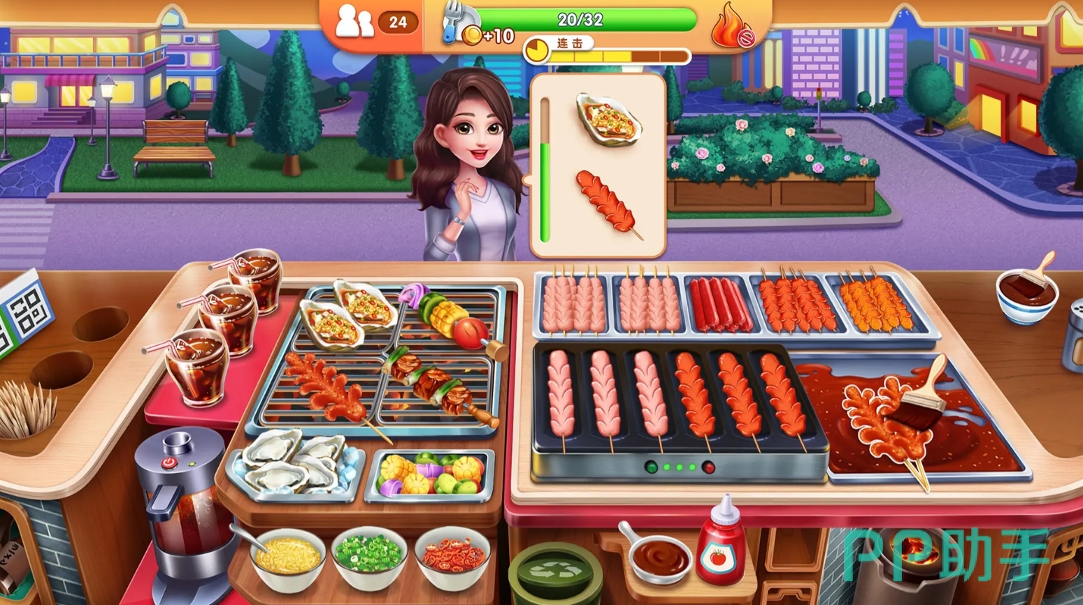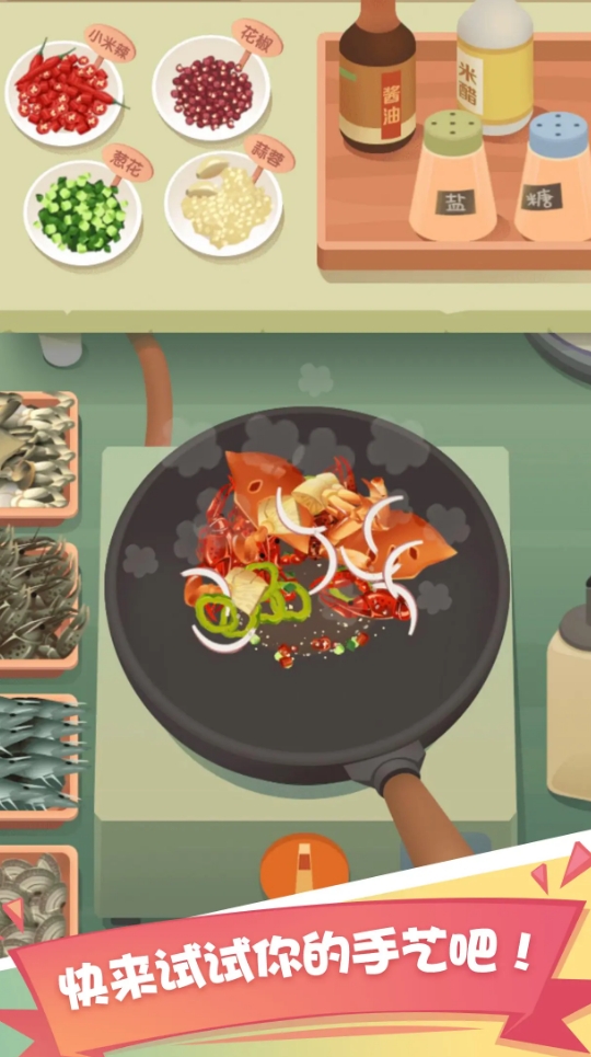 玩家能在游戏里经营一家大排档,并亲手去完成美食的制作,为所有客人奉上令他们满意的菜肴。游戏有着十分完整的做菜过程,每一道也都有不同的步骤,还要注意控制火候和添加原料的时机,这样才能在这部游戏里把菜做好,有着很不错的互动性玩法。在结束当天的经营后,各位还能在做菜玩法之余,挑战别具趣味的清洁小游戏。