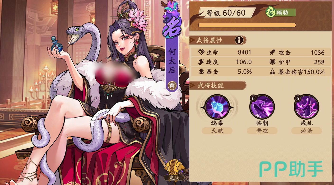 综合来看,何太后并非传统意义上的爆发型输出,而是以机制驱动为核心的战术支点。她在PVP环境中尤为突出,配合推条节奏与持续毒伤,可有效压制快攻流派,并在中后期形成不可忽视的压制力。对于组建毒伤体系或追求稳扎稳打打法的玩家而言,她是不可或缺的高性价比培养对象。建议新玩家在完成基础星级提升后,将其编入主力阵容进行实战验证。