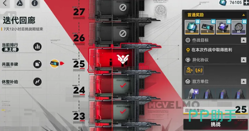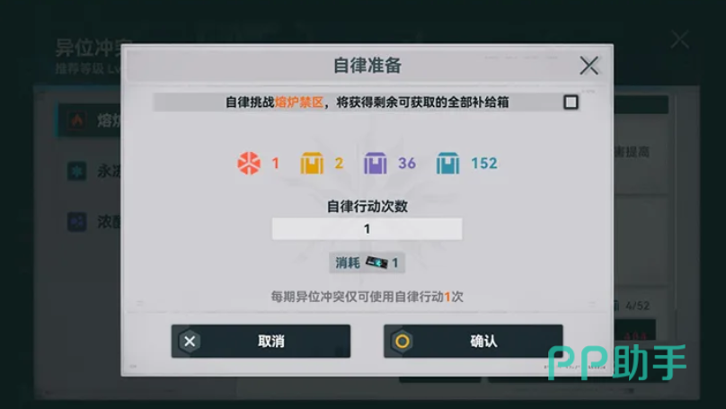 通关关卡可获得“净化指令”与“坍塌晶条”等核心资源。其中,净化指令支持在“异位冲突”玩法中每周激活一次自律行动,自动扫荡任一探测区并全额获取该区域全部道具奖励。活动全程设有实时排行榜,结算期结束后将依据最终排名发放限定“挑战者勋章”。