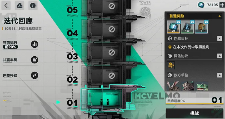 挑战期首4日开放普通关卡,每日最多挑战5层。每层须部署5名人形完成通关,仅当前层全胜方可解锁下一层。所有人形初始拥有2次基础部署次数,每次上阵消耗1次;次数于每日凌晨5点统一刷新。