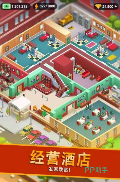 这款游戏开局让你拥有一家酒店,你可以肆意地经营它。游戏拥有内置菜单,其有非常多的功能,你可以通过其管理酒店,或是装修改造,增加便利设施、家具等,让客人眼前一亮,住得更舒服,或是招募精英,给客人最好的人工服务,这考察着你的规划能力、创意和识人之能。随着你的明智举措,酒店的名声会打响,更多客人入住时你也会有成就感。
