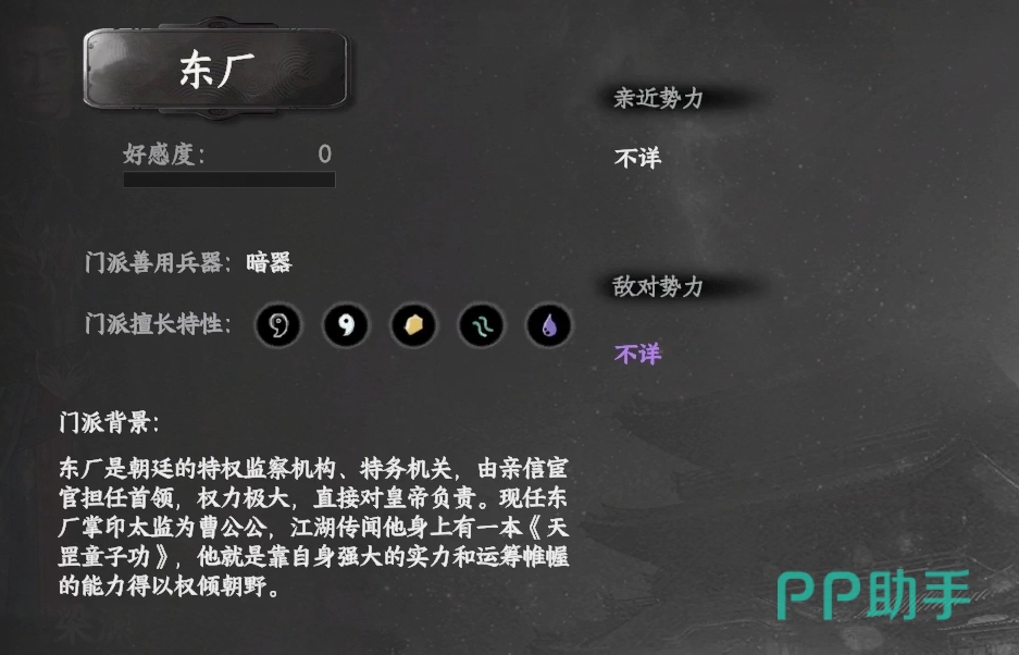 东厂是早期即可加入的强力门派,主修暗器流派,尤其适合偏好远程输出的玩家。晋升至亲传弟子后,可习得顶级暗器武学葵花,战力飞跃显著。需要注意的是,一旦加入东厂,便无法再归属其他门派;若中途退出,则永久失去回归资格。因此建议在掌握全部核心武学后再考虑脱离,以免错失关键功法。