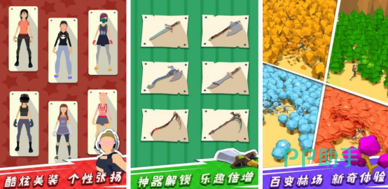 清新的画面,适合所有年龄段的人群,这款游戏所呈现出的地图场景有很多,您可以在偌大的地图当中完成闯关冒险的元素。游戏涵盖了众多挑战的关卡,每个关卡中所呈现出的数目是完全不同的,您可以从多样化的神器中随意挑选,感受砍树的无尽欢乐。游戏里还有多样化的炫酷服装,等待玩家解锁,打造出个性化的服饰类型。