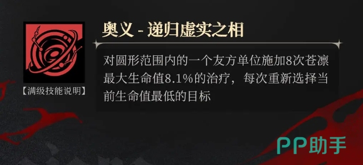 她的护盾不仅仅是一层保护罩,在保主C或前排肉盾时,阿伊塔的护盾能够提升他们的续航能力,而当整个团队进入血月状态时,阿伊塔的护盾更是如虎添翼,为所有己方单位都披上一层坚固的铠甲,除了在战斗中提供的实时保护,阿伊塔的奥义技能更是核心效果,一旦释放,她不仅能为友方单位添加一个相当于自己生命值上限27.2%的护盾,还能为生命值最低的单位额外提供一个基于其自身生命值上限10%的护盾。