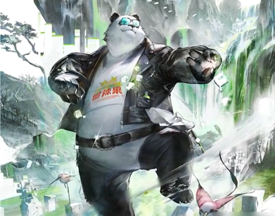 明日方舟终末地中的熊猫人名字叫做大潘,它属于乌萨斯这个种族,大潘在游戏中的造型非常的独特,成功的把传统元素和现代元素给融合在一起,让它看起来既有着雄猫特有的憨态可掬,又带有一种帅酷的感受。