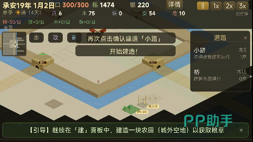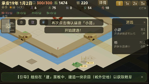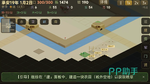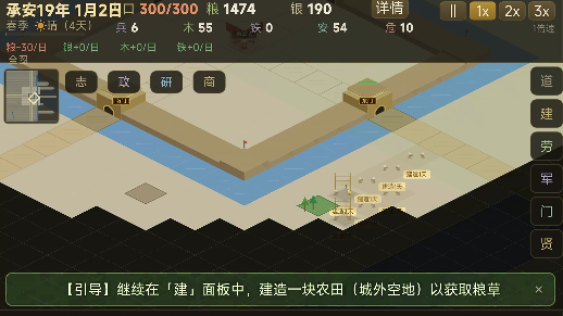 城建布局需兼顾功能分区与地理适配:住宅区宜靠近水源与道路,商铺应集中于主街两侧,农田、桑园、渔场等生产设施建议布设于城郊空地,以降低运输损耗并提升产出效率。