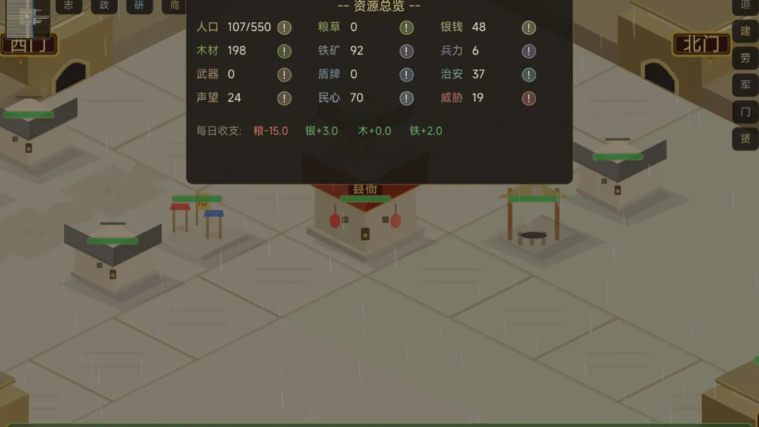 关于末代县令手游好玩吗?答案是肯定的——它融合了轻度策略与沉浸式经营体验。区别于单一经济导向的同类产品,本作要求玩家同步关注人口增长、治安维稳、赋税征收、灾害应对等多维指标,资源积累需通过垦荒、征税、贸易、事件奖励等多种路径实现,系统深度与成长自由度兼具,适合偏好慢节奏、重思考的模拟经营爱好者。