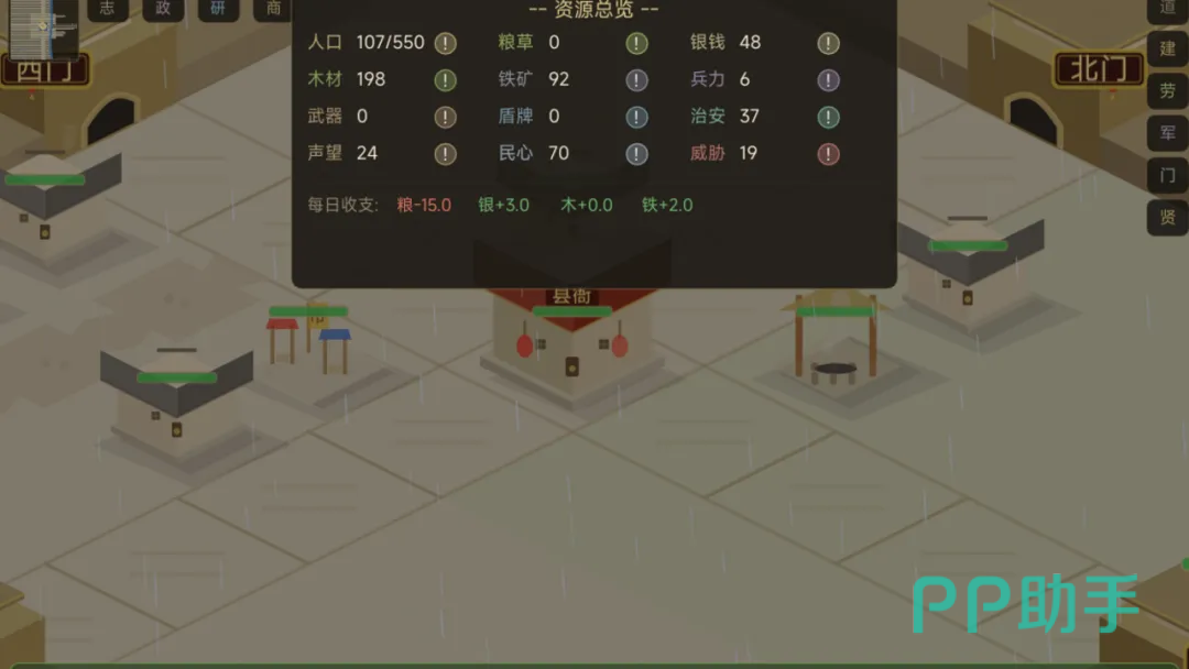 不同发展阶段对粮草、银两、木材、石料等基础资源的需求量存在明显差异,需依据当前人口规模、建筑类型及任务目标动态调整采集与分配节奏。财政账目需实时核查,避免入不敷出导致建设中断或民心下滑。