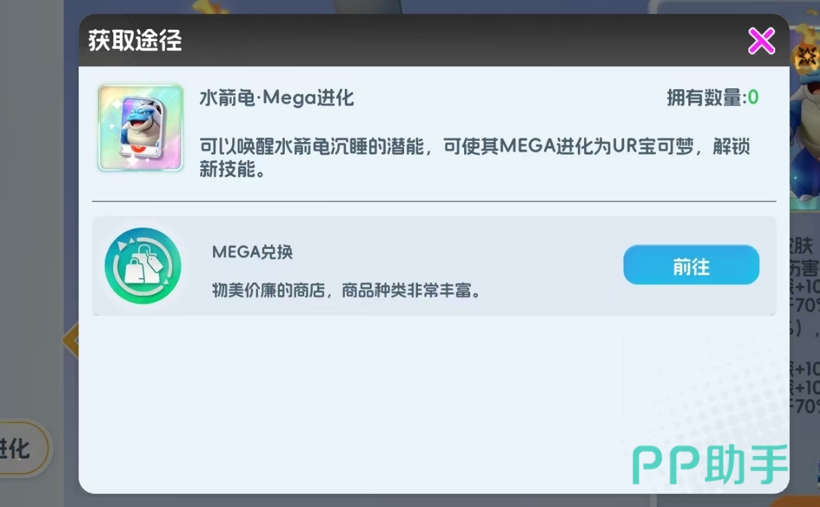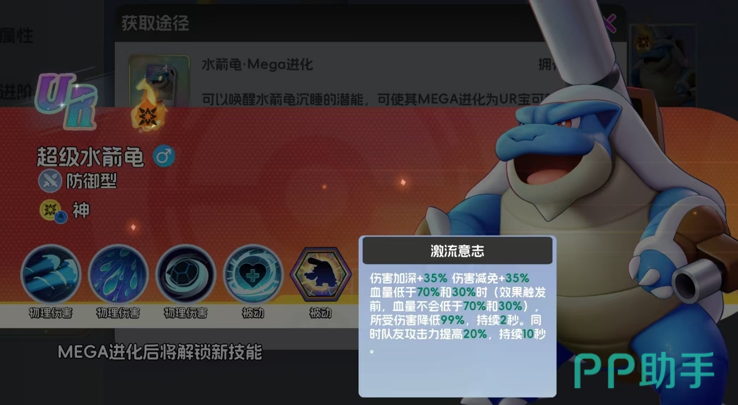 游戏内召唤上限为SP级,但这并非成长终点。所有SSR及SP品质的宝可梦,只要满足条件,均可进一步进阶为UR品质。该过程依赖“MEGA进化”机制,成功触发后不仅品级永久提升至UR,还将同步解锁专属新技能,并呈现完全重制的立绘形象。然而,MEGA进化设有双重硬性门槛,缺一不可。