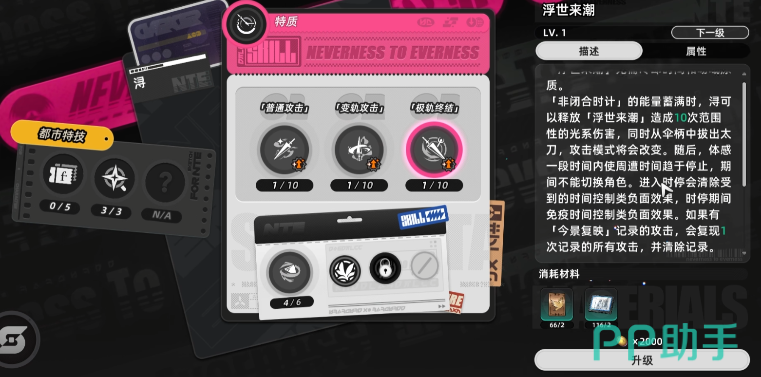 终极技为零冷却、零能耗的能量型大招:能量充满后可发动10段连续范围伤害,同时自伞中抽出太刀切换攻击模式。释放期间进入时间静止状态,清除全部负面效果并免疫所有控制类异常,但无法手动切换角色。该机制极大提升了输出环境安全性与节奏掌控力,属于必练核心技能,资源投入优先级最高。