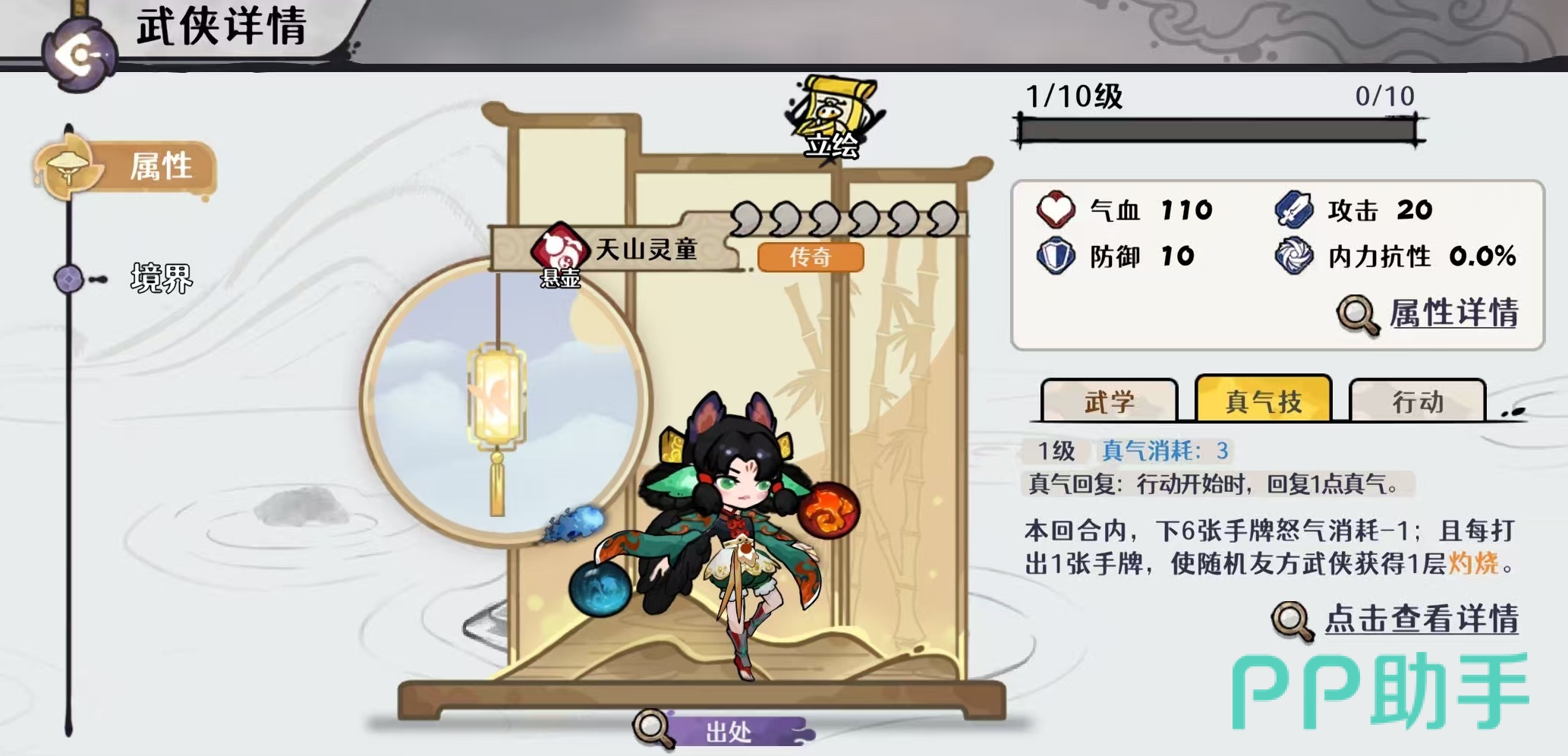 核心武学【双生灵珠】具备三层战略价值:第一,可为全体己方武侠叠加最高30层“有害状态”,每层提升其下一次真气技能1%伤害;第二,本回合内我方每损失10%气血,额外赋予1%真气技能增伤,完美契合自残节奏;第三,真气技能在行动开始时恢复1点真气,并使本回合后续打出的6张手牌怒气消耗-1;同时,每使用一张手牌,即随机赋予一名友方1层灼烧效果。当经脉满级时,全队暴击伤害提升8%。该角色实质上实现了“减耗—增伤—控场—复活”四维闭环,是火系真气流与自残爆发流不可替代的战术支点。