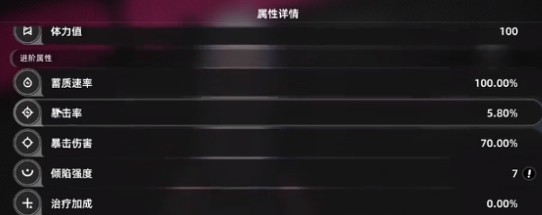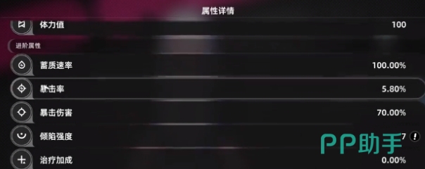 暗能谱系用紫色彰显诡异,魂能谱系则以宁静的蓝色为标志,最后相能谱系是黄色,代表着平衡与协调的力量,除了这些独特的异能谱系之外,游戏中的角色还具备许多常见的属性,充能速度就是其中之一,它决定了角色在战斗中能够多快地积攒能量,暴击率也是至关重要的属性,高暴击率意味着角色有更大的几率在攻击时造成巨额的伤害。