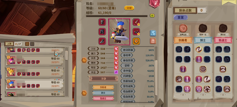 装备延伸配置中,连环钢护腿与连环钢靴延续双抗加成逻辑;主武器推荐刺矛,在提供生命值加成的同时,附带酬金减少效果,优化资源循环效率。圣印与副词条配置以生命值、双抗为绝对核心。针对老虎与狂战士组合可能出现的暴击率溢出问题,建议切换至学徒袍、学徒裤等命中导向装备,同步补足敏捷属性。若阵容中配置奶妈类角色,其圣印与装备副词条务必优先锁定魔力与魔攻,确保治疗量达标。