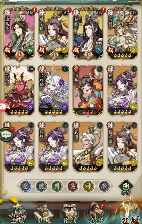 T1级别的武将分别有这四个,他们分别是蔡文姬、关羽、袁绍、张角,这四个角色虽然不如T0级别的组合,但仍然拥有很强的输出能力,尤其是在张角搭配蔡文姬时,能够对敌人造成控制型的法术打击。