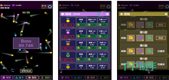 这款物理弹球打砖块的游戏也可带来超级解压的感觉,同时加入了抽卡系统可获得各种属性的球球,多样玩法融合其中增加了弹球闯关的快感,简单上手的控制体系能让弹球小白快速领悟,各种属性的小球能提供大量buff帮助通关,五彩斑斓的球球在一起碰撞闯关的画面超炫酷,快进入物理弹球的神奇世界消除闯关吧。