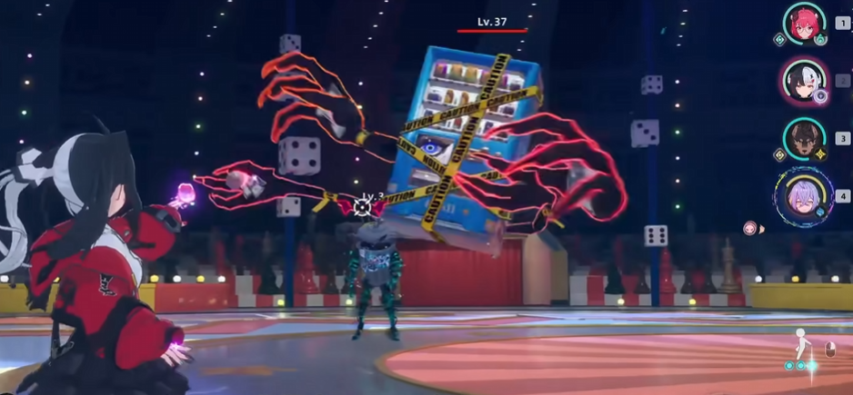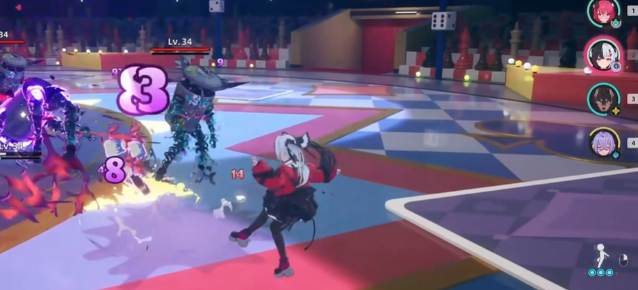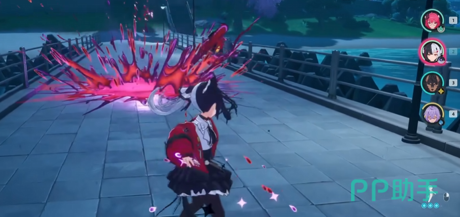 安魂曲的基础攻击体系以“颜料投射”为核心机制。普通攻击共五段:前四段为连续发射可溅射的颜料弹,命中后对范围内多个目标造成范围伤害;第五段则切换为肩扛式颜料炮进行直线轰击,具备更高单体压强。该设计兼顾清杂效率与BOSS战输出节奏,操作门槛较低但容错率良好。