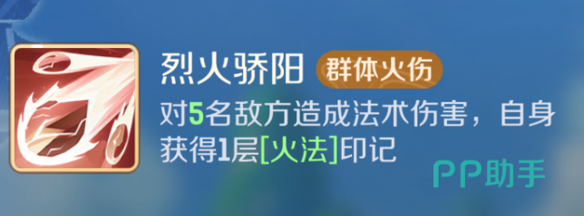 与之相对的是范围型火系技能“烈火骄阳”,该技能能够同时攻击五名敌方单位,并附加火属性伤害。施法完成后,天宫将额外积累一层火法印记。这种双轨制的印记获取方式,为后续技能组合提供了丰富的策略空间。