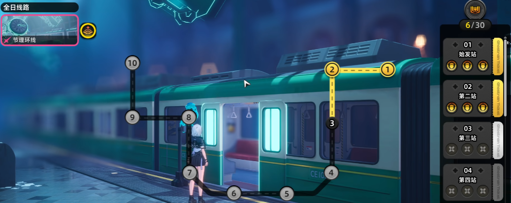 在轨外之境中,玩家需操控电车依次通过10个站点,每个站点对应一个独立关卡。每完成一关并达成完美条件,即可获得三枚猫头鹰徽章以及专属奖励。值得注意的是,各个关卡的通关要求各不相同。例如,在第3关中,玩家必须击败所有敌人,并确保剩余时间超过240秒甚至达到300秒以上,只有完全满足这些条件,才能拿到全部三枚徽章。