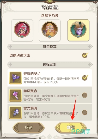 但每次爬塔之前需要你选择自己的职业和武器,所以这里就正好可以用来更改职业,比如小编这里开局选择了野蛮人职业,后续想更换其他不朽者,那么只需要点近来然后选择其他不朽者职业的头像,然后点击下方的确定即可。