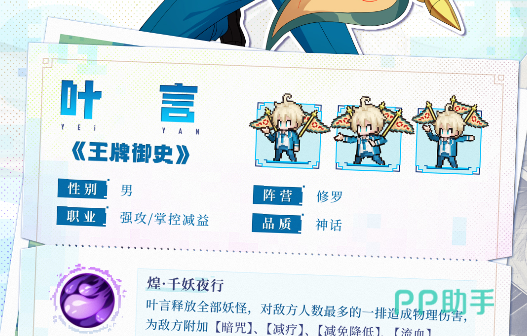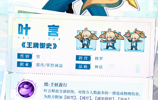今天小编带来的内容是三千幻世叶言玩法攻略,叶言作为来自打更人家族宗支的夜部御史,凭借其独特且强大的技能,为玩家的征途照亮前行的道路,玩家既要穿梭于风格迥异的国漫场景,探索神秘未知,又要在激烈的战斗中与各方势力周旋,既能操控神秘的八面煌妖幡,释放千妖之力,又能化身黑夜主宰,掌控战局走向,接下来让小编跟大家一同揭开叶言玩法的神秘面纱。