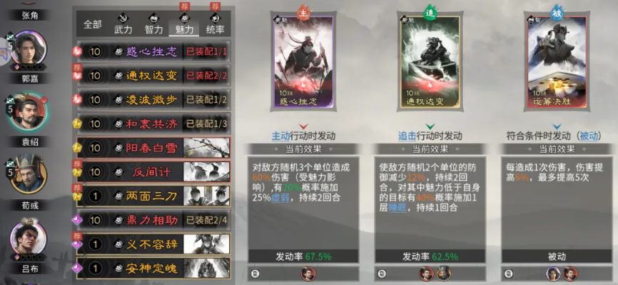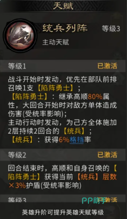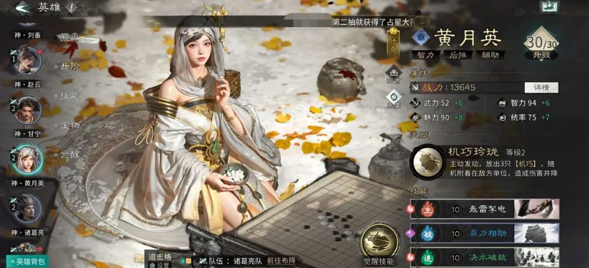 阵容养成方面,需重点关注三项资源投入:一是袁绍、高顺、黄月英三人的觉醒等级必须同步推进,确保召唤机制完整触发;二是优先提升黄月英天赋“玲珑”至3级,以激活关键增伤与控制模块;三是合理分配统兵资源,使召唤单位兵力数值随等级提升稳定增长。该阵容前期成型较快,但中后期强度跃升明显,属于典型的“越养越强”型配置。
