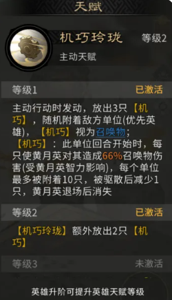 关于技能释放细节:黄月英的3只机巧务必集中施放于单一敌方单位,以激活叠加增伤;袁绍的石炮在觉醒后不仅提升基础伤害,更在命中时附加眩晕效果,强化控场链;高顺不占用追击格位,因此袁绍与黄月英需严格布阵于追击位,确保技能释放路径畅通。此外,当黄月英技能升级至3级后,“玲珑”可额外生成2只机巧,此时召唤物总伤害提升30%,并解锁眩晕类天赋加成,显著提升后期PVE与PVP容错率。