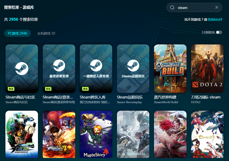 biubiu资源站很强大,全球游戏都在它的加速范围内,平台把每款游戏的区服都收录了,想玩什么服都可以。很多小伙伴平时喜欢在steam上玩游戏,同样也能先用biubiu加速游戏平台,启动成功后网速会同步steam,大家玩游戏再也不卡顿了。