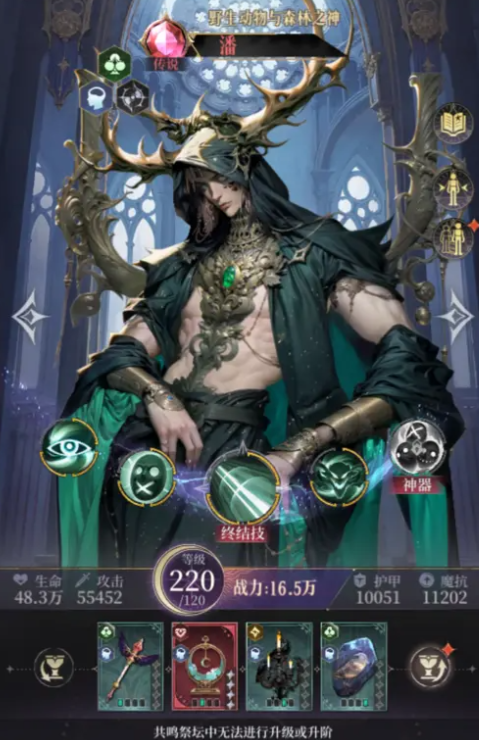 潘的核心优势在于其强大的能量干扰与多重控制手段。他的大招可以直接清空敌方全部能量,技能组合包含沉默、恐惧与催眠效果,能够长时间限制对手行动。即使面对阿瑞斯这类强势BOSS,也能通过持续控场打出优异表现。养成成本较低,适合应对各类高难度挑战场景。