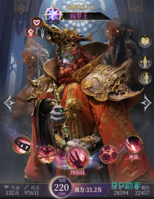 阎罗王具备极强的先手压制能力,开局即可强制拉取敌方一名角色至己方区域,并施加长达6秒的禁锢效果。被动技能在承受伤害时可削减对方能量,大招附加2秒眩晕,使其成为针对敌方核心输出位的最佳切入工具,常用于快速瓦解对手主力阵容。