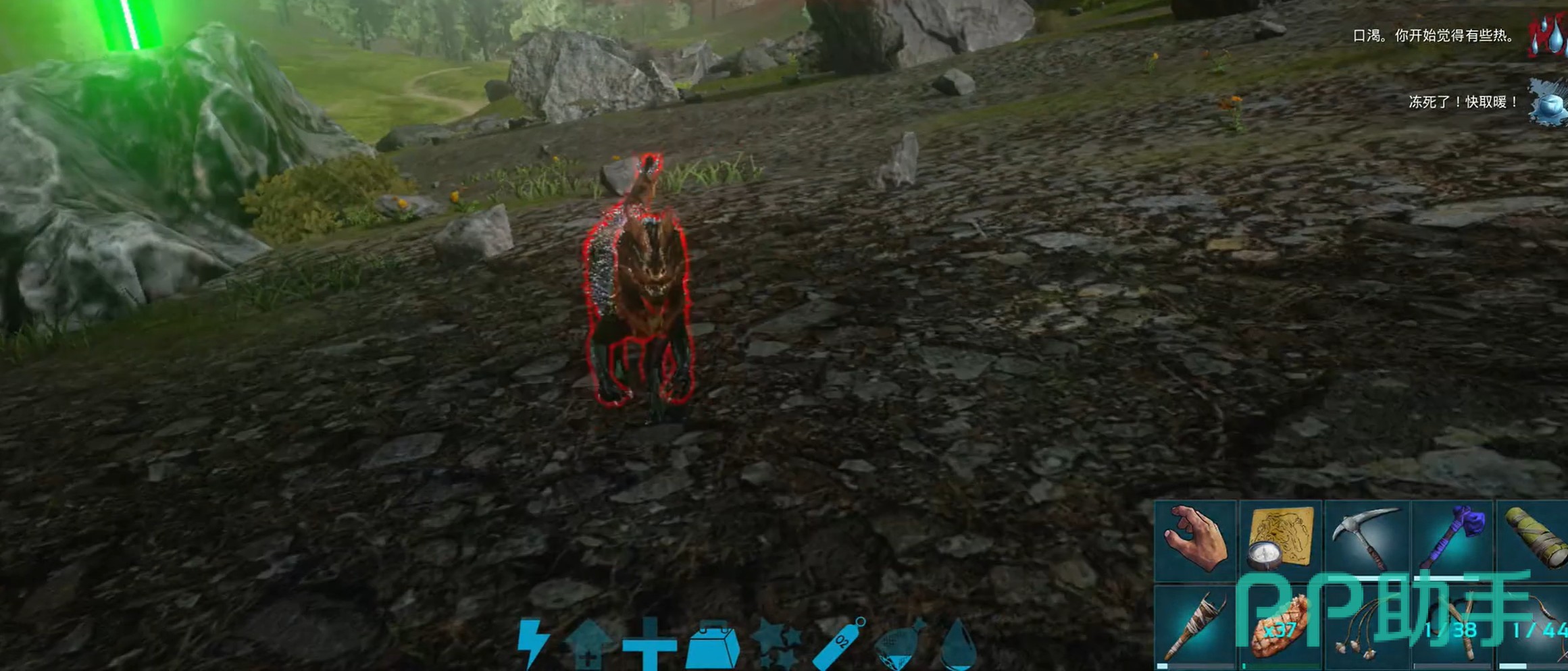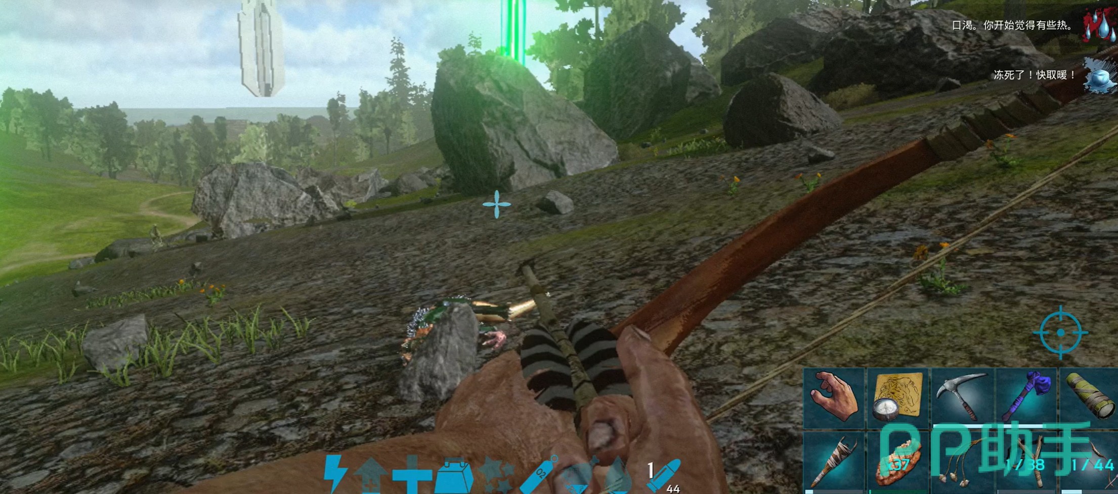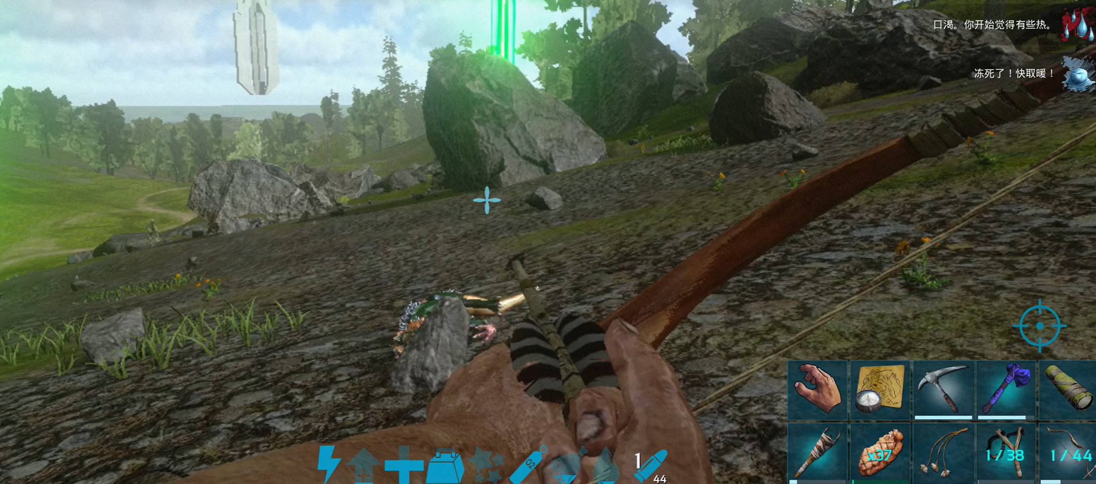 该武器具备明显的战术优势:攻击时无需近身接战,可维持安全距离持续输出,大幅降低被恐龙突袭或围攻的风险。尤其对中后期尚未组建完善团队的新手而言,传说弓能显著提升野外资源采集、中立生物引诱及基地警戒等场景下的容错率与操作自由度。