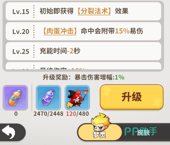 天赋系统围绕火系持续作战能力展开梯度强化:1级解锁“分裂法术”,使所有火系技能伤害产生2道分裂弹体,覆盖更广扇形区域;20级激活“肉蛋冲击”,命中后为目标附加15%易伤状态,持续5秒,显著提升全队物理与法术伤害收益;25级开放“充能时间缩减”天赋,使核心技能冷却降低2秒,大幅提升火锅部署频率与灼烧覆盖率;每次升级同步提升暴击伤害数值,确保成长曲线稳定向上。