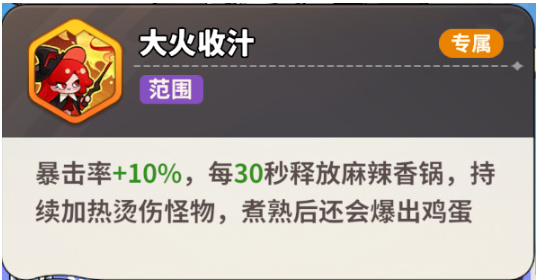 该角色设定源自魔法学院顶尖学员,火焰亲和力远超常人。其标志性技能“大火收汁”可在战场中央部署巨型魔法火锅,每30秒自动释放一次,火锅持续加热期间对半径范围内所有梦魇单位施加高额持续灼伤效果。配合被动天赋,该技能还能提升自身10%暴击率,形成攻防一体的节奏控制优势。