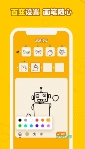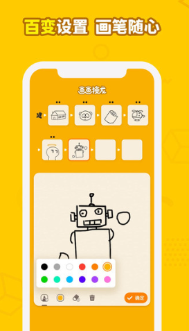 每位玩家都化身为创意大师,六人携手组成创意小队,轮流在画布上挥洒笔墨。从起始的微妙笔触至最终的圆满收官,每位成员需在限定时间内,以前人的作品为基,巧妙融入个人创意。随着轮次的变化,画面更加的多彩,故事情节也日益丰满。还可以邀请友人并肩作战,共同编织专属故事篇章。多样绘画工具任玩家挑选,让创意自由挥洒。