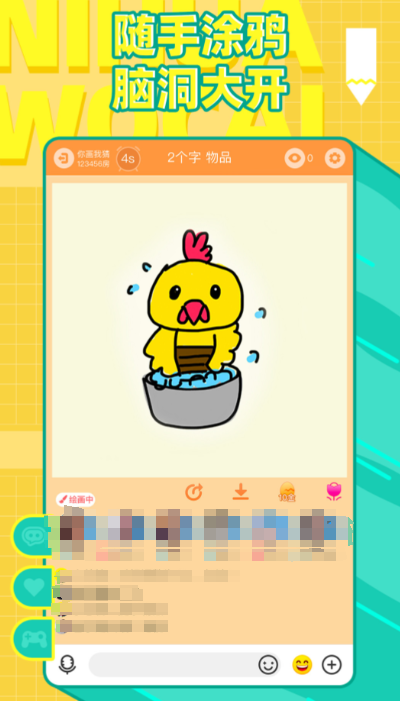 玩家需根据屏幕上的成语,用简笔画的形式描绘出来,再由其他玩家进行猜测。游戏采用轮流制,每位玩家都将有机会成为作画者或猜画者,累积点数最多的玩家将赢得比赛的胜利。游戏在传统的基础上进行了创新,为玩家带来了全新的游戏体验。游戏中设有多种有趣的闯关挑战,等待玩家去解锁和体验,每一关都充满了不同的乐趣。不仅考验玩家的绘画技巧与猜测能力,更考验团队之间的协作与默契。