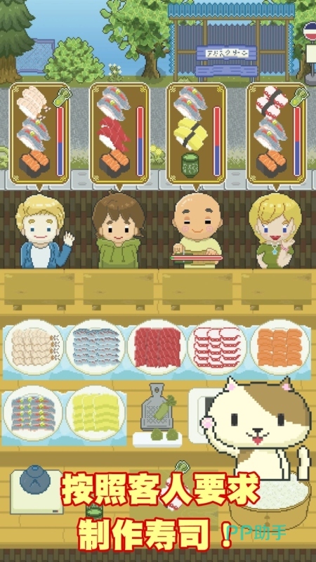 整个游戏时散发出来的风格就是萌萌哒,大家在游戏里面可以变着花样的来制作寿司,并且随着游戏的进程,也可以去升级自己的店铺。为了让每一位顾客满意,所以玩家需要尽可能的,符合客户的要求来制作。玩家也可以根据自己的喜好,尝试做出不同组合的寿司,而且在制作寿司的过程中也可以使用道具。
