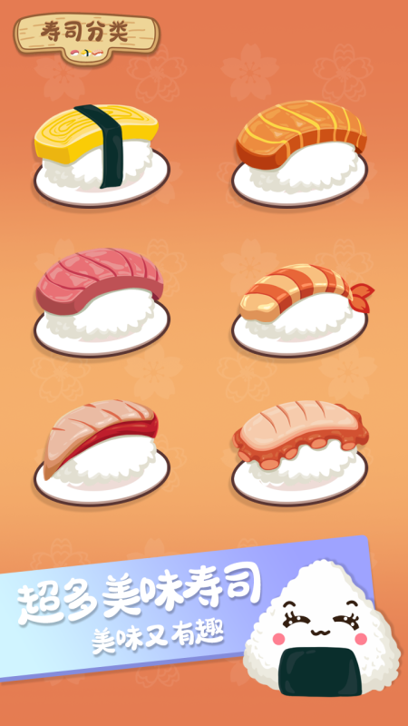 同样这也是和寿司有关系的一种玩法,游戏的画面风格非常的清晰,而且大家可以将这些不同种类的寿司进行分类,可以按照相应的排序方法。其实游戏的关卡难度前面是不高的,后面的关卡难度会飞速的提升。大家只有加同一种寿司放在一起,才能够顺利的通关,所以这些游戏,要求大家有一个非常精准的观察能力。