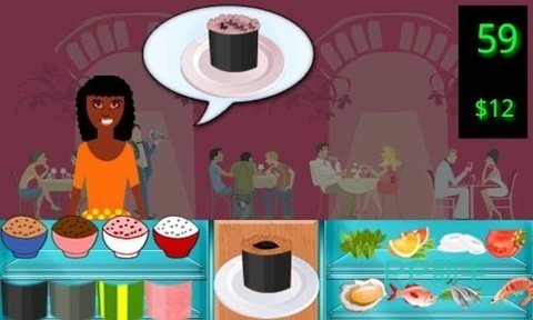 同样也是和寿司制作有关系的一款游戏,玩家为了能够满足不同客人的需求,所以需要加快制作寿司的过程。游戏画面采用的是卡通的形式,设计的非常精美,大家为了能够让自己的餐厅声望更高,所以需要火速的来制作这些寿司,游戏伴随着比较欢快的背景音乐,各种操作都可以直接点出屏幕。