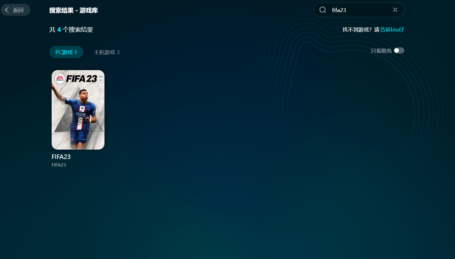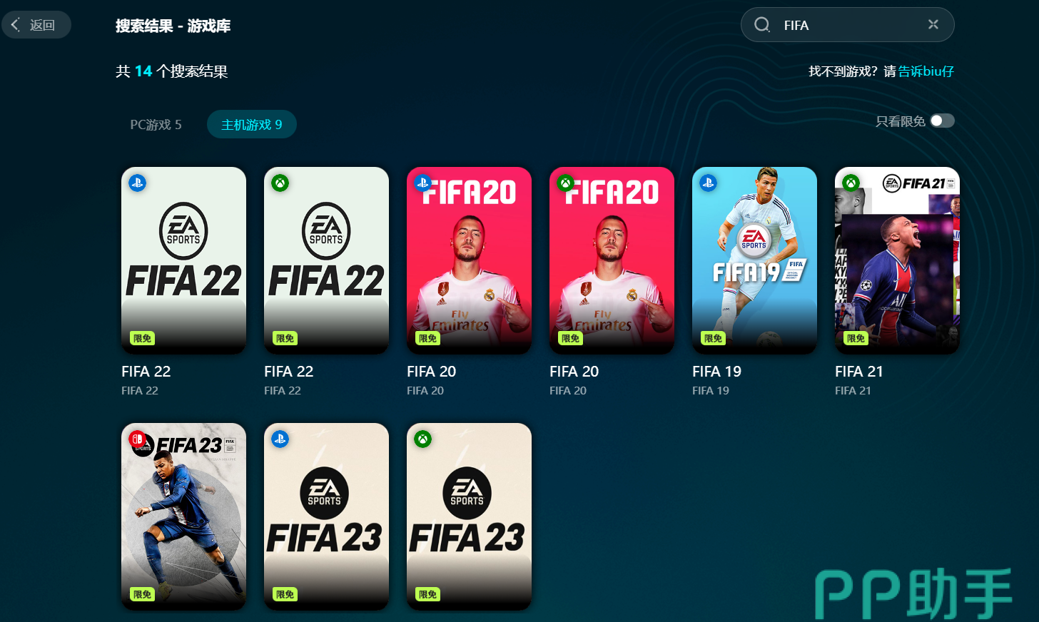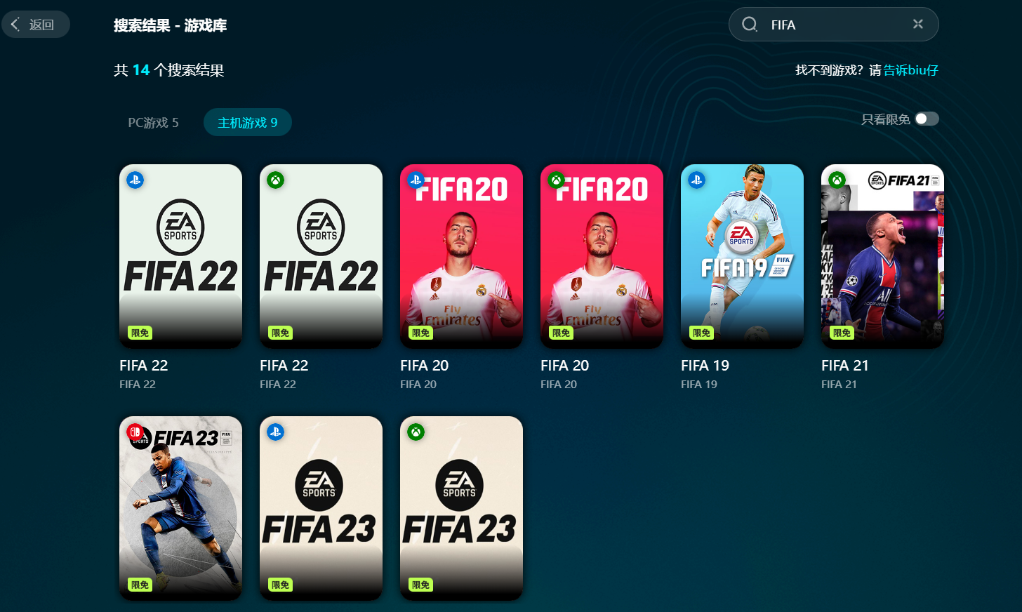 值得一提的是,除了fifa23这款游戏,fifa系列的各大热作均有在biubiu游戏库中,只需在搜索页面选好对应平台的加速选项,也可对其它作品进行优化,就能更加顺畅,避免卡顿、延迟等问题。