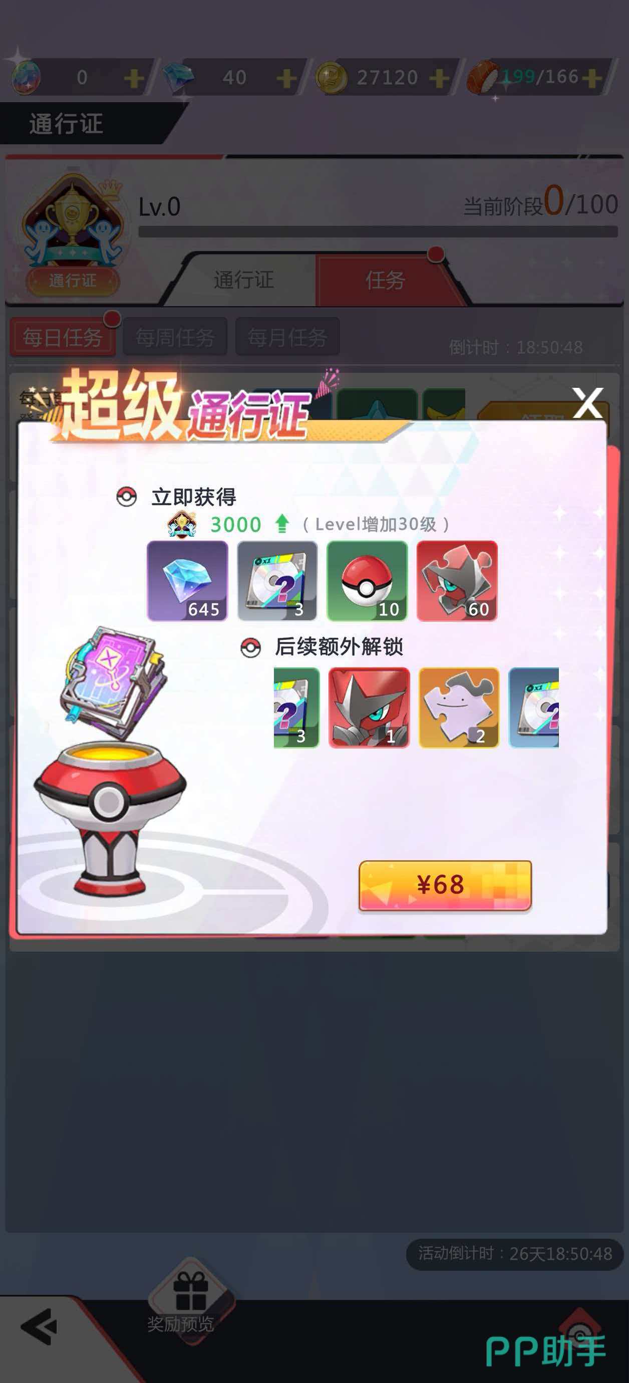首充档位是前期性价比突出的选择:98元档可获得闪光形态超梦(帽子款),并同步解锁钻石、金币及百变怪等养成资源,综合资源回报率约达十六倍,为战力初期跃升提供关键支撑。