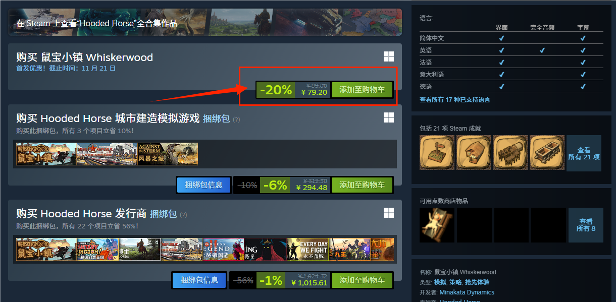 鼠宝小镇的标价为99元,在独立游戏中属于常规定价区间。尽管是百元内的作品,但其内容体量相当丰富,远超同类小体量休闲游戏。作为一款类文明题材的游戏,本作不含DLC的情况下维持了合理的价格定位。游戏中包含大量可交互系统,如建筑升级、资源交易和城镇发展等机制,其中以交易系统最具策略性,提供了多样的成长路径与探索空间。