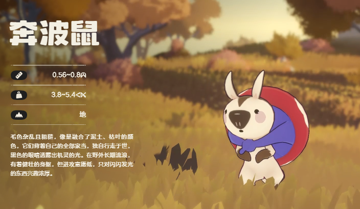 最后再推荐一个奔波鼠,奔波鼠是洛克王国中土系宠物口袋鼠的中级形态。它体型小巧,却活力满满,浑身覆盖着一层土黄色的绒毛,与土地的颜色相近,仿佛是大地的精灵,能轻松融入周边环境,其耳朵又大又尖,时刻警惕地竖着,不放过周围任何细微的动静,黑豆般的眼睛炯炯有神,透露出机灵与聪慧,一条细长的尾巴在身后摆动,帮助它在奔跑和跳跃时保持平衡。