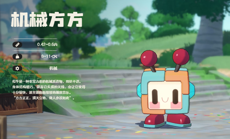 首先推荐机械方方,机械方方整体造型方正,犹如一个由精密机械零件拼凑而成的小方块,它的身体主要由银色金属打造,表面闪烁着冷冽的光泽,彰显出机械的质感,在其身体的四个角,分别安装着圆形的发光装置,发出幽蓝的光芒,为它增添了几分神秘色彩,机械方方的头部是一个稍小的方块,上面镶嵌着两颗红色的宝石作为眼睛,目光坚定而明亮,从性格方面来看,机械方方具备坚韧不拔的特质,它对待任务和战斗认真负责,一旦认定目标,便会全力以赴,绝不轻易放弃。