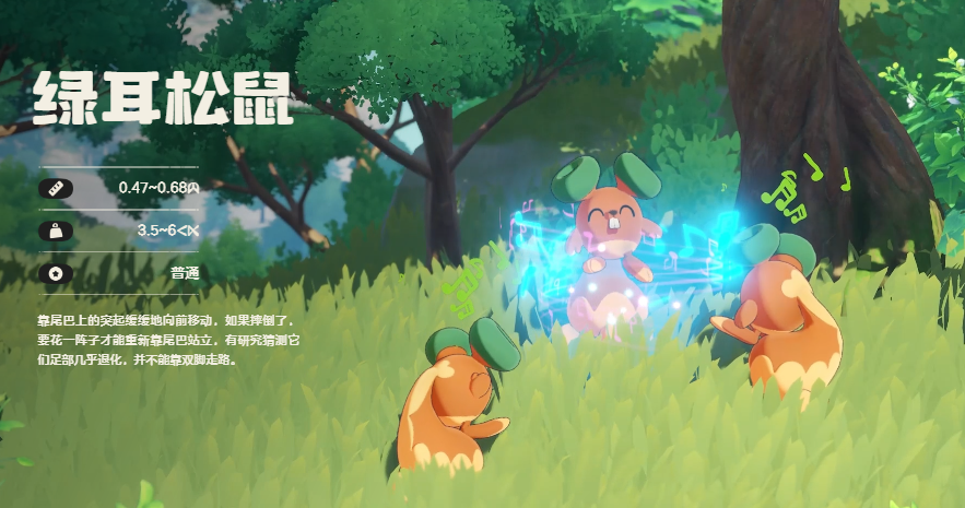 其次推荐绿耳松鼠,绿耳松鼠在洛克王国中是十分惹眼的存,它浑身覆盖着柔软的棕色毛发,摸起来顺滑无比,最为独特的是其两只耳朵,呈现出清新的绿色,犹如春天刚冒出的嫩芽,为它增添了一抹别样的生机,一条蓬松的大尾巴摇曳在身后,这尾巴不仅能帮助它在跳跃时保持平衡,看起来还十分可爱。绿耳松鼠的眼睛圆溜溜的,乌黑发亮,时刻闪烁着好奇的光芒,对周围的一切都充满探索的欲望。